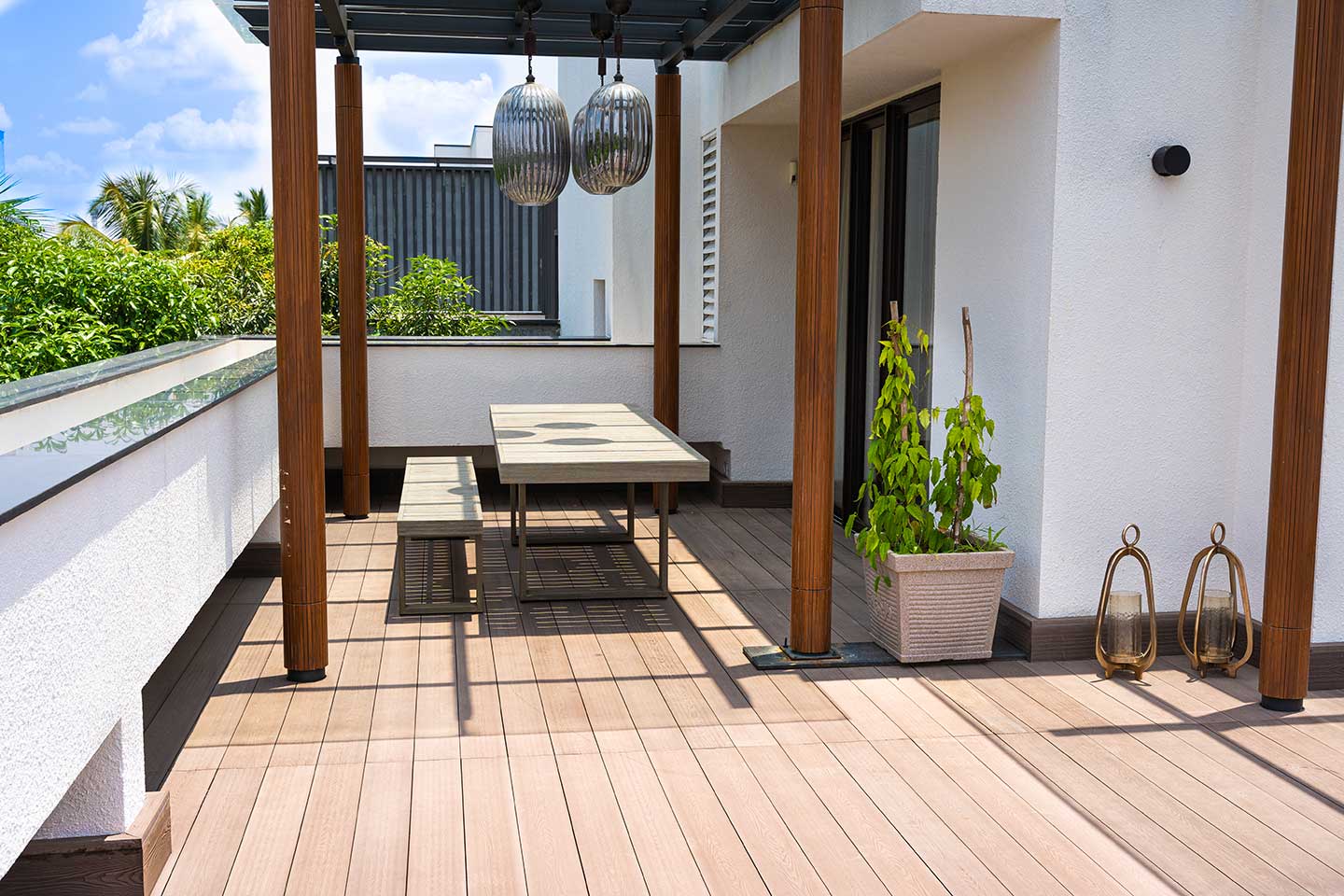 Our WPC decking collection offers a stylish and durable outdoor flooring solution with a range of options to suit every space. Choose from hollow WPC boards in elegant finishes like Walnut, Chocolate, Grey, and Wenge, or opt for second-generation WPC that features natural wood grain textures in trending tones such as Grey, Walnut, and Ipe for a more authentic look. For easy upgrades, our deck tiles are quick to install and perfect for transforming balconies or patios into inviting, low-maintenance outdoor retreats.